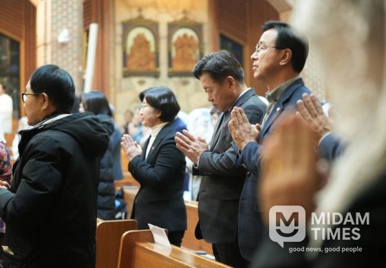앞서 24일 오후 8시에는 천주교 제주교구 주교좌 중앙성당에서 문창우 비오 주교가 주례한 성탄 대축일 밤미사에 참석해 신도들과 함께 예수 그리스도의 탄생을 기념했다.