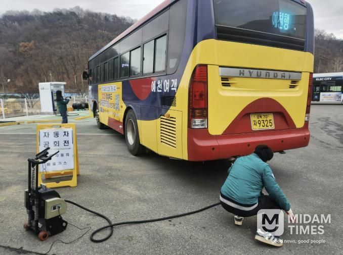 미담타임스 김준완 기자 | 예천군은 지난 23일, 예천시내버스터미널 차고지에서 예천시내버스 등 경유차에 대한 배출가스(매연) 특별 점검을 실시했다.