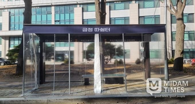 미담타임스 김교환 기자 | 부산시 금정구는 지난 17일부터 약 5일간에 걸쳐 버스 이용 승객들의 편의와 한파 피해로부터 보호하기 위하여 추위대피소인 ‘금정따쉼터’를 설치했다.
