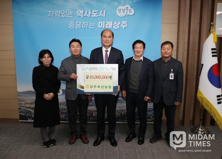 미담타임스 김준완 기자 | 상주축산농협에서는 24일 오후 상주시청을 방문하여 상주시를 이끌어갈 인재 육성을 위해 상주시장학회에 장학금 1,000만 원을 기탁했다.