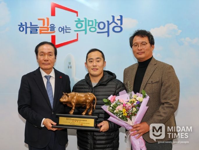미담타임스 김준완 기자 | 의성군은 위더스제약 2025 문경오미자장사씨름대회에서 의성군청씨름단 소속 윤필재 선수가 태백장사에 등극했다고 밝혔다.