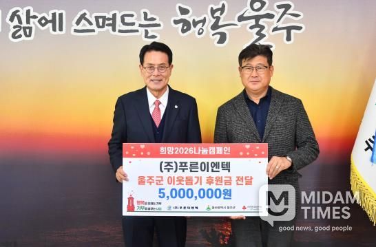 미담타임스 김준완 기자 | ㈜푸른이엔텍이 26일 울주군에 지역 저소득층을 돕기 위한 성금 500만원을 전달했다.