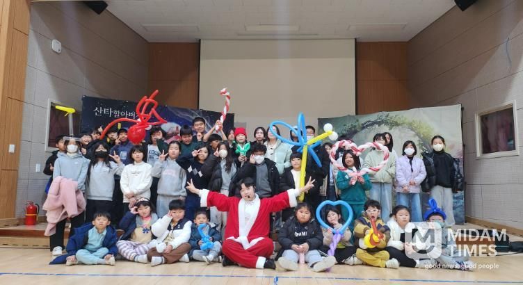 등장만으로도 아이들의 얼굴에 미소를 띠게 했으며, 풍선을 이용해 다양한 모양의 선물을 만들어 나누어 주었다.