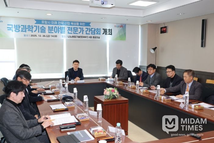 미담타임스 김준완 기자 | 포항시는 26일 포스텍 나노융합기술원에서 미래 신성장 동력 창출을 위한 ‘국방과학기술 분야별 전문가 간담회’를 개최하고, 지역 산업과 연계한 국방과학기술 신산업 육성 전략을 논의했다.