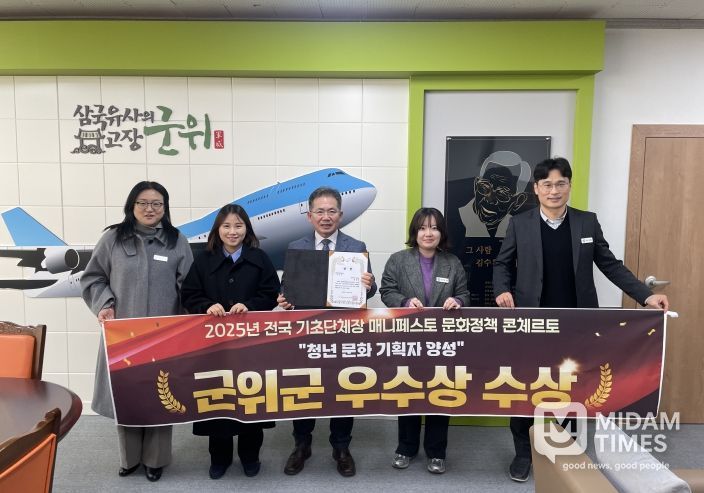 미담타임스 김준완 기자 | 군위군은 12월 23~24일 열린 ‘2025 전국 기초단체장 매니페스토 문화정책 콘체르토(Concerto)’에서 청년이 주도하는 문화활동 사례를 주제로 발표해 문화활동 활성화 분야 우수상을 수상하는 영예를 안았다.