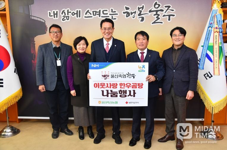 이순걸 군수는 “연말을 맞아 지역사회를 위해 따뜻한 나눔을 펼쳐주신 울산축산농협에 감사드린다”며 “기부해주신 물품은 도움이 필요한 이웃들에게 소중히 전달하겠다”고 밝혔다.