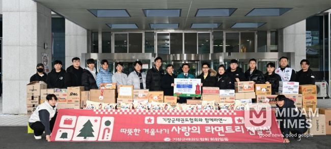 이날 기탁된 성품 중 라면은 기장군 태권도협회와 협회 소속 체육관(강한·독수리·문창·칠보·야무진·라온·행복한·한얼·신정·월내·앰케이비·영웅·어울림·한솔·해빛·아이원·윤빛·온리원) 18개소 회원들이 십시일반 뜻을 모아 마련한 것이다. 이에 기장군 태권도협회가 백미 200kg를 추가로 기탁하면서, 연말연시 이웃사랑 실천에 따뜻한 마음을 더했다.