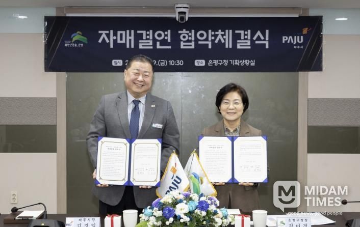 미담타임스 정주환 기자 | 서울 은평구는 경기도 파주시와 양 지역 간 상호 교류를 통한 우호·협력 증진과 지역발전을 도모하기 위해 자매결연 협약식을 진행했다고 26일 밝혔다.