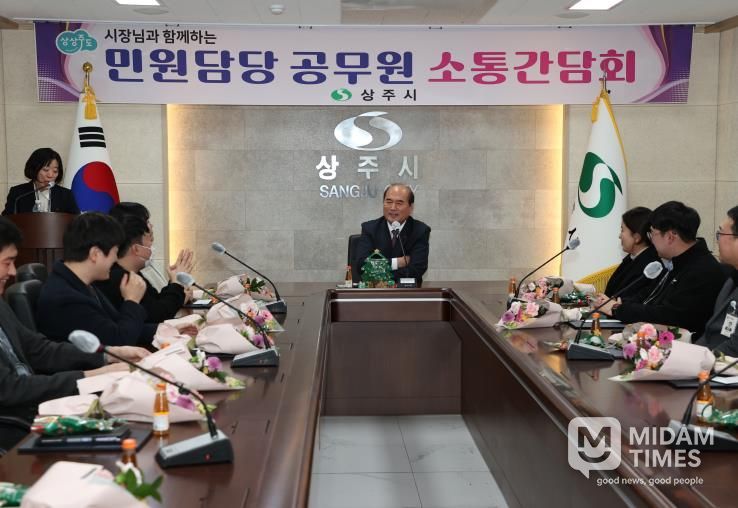미담타임스 김준완 기자 | 상주시는 12월 24일 시청 소회의실에서 민원담당 공무원과의 소통 간담회를 개최했다. 이번 간담회는 연말 민원처리 마일리지 및 국민신문고 민원 처리 우수 공무원으로 선정된 직원 18명의 시상식이 함께 진행됐다.