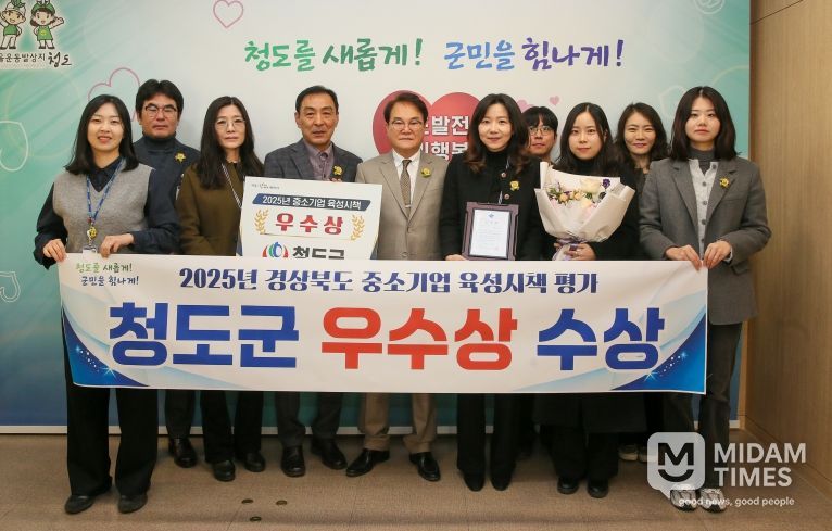 미담타임스 김준완 기자 | 청도군이 지난 26일 경상북도가 주관한 ‘2025년도 중소기업 육성시책 시군 평가’에서 기업지원 성과를 인정받으며 ‘우수상’을 수상했다. 2024년 최우수 시군 선정에 이어 올해도 좋은 평가를 받으며 기업 지원 정책의 연속성과 실효성을 다시 한 번 입증했다.