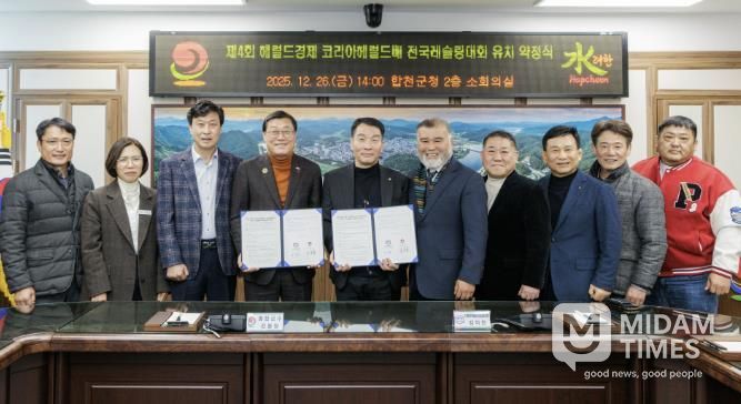 미담타임스 김교환 기자 | 합천군은 12월 26일 합천군청에서 ‘제4회 헤럴드경제 코리아헤럴드배 전국레슬링대회 및 제4회 전국생활체육 레슬링대회’ 유치 협약을 체결했다고 밝혔다.