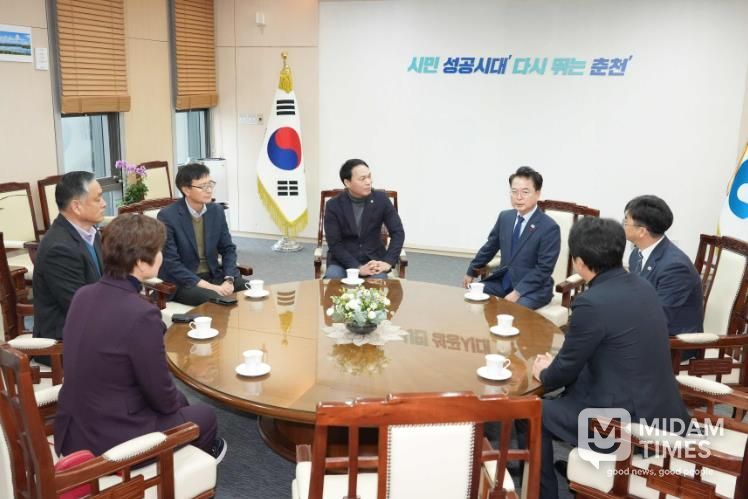 육동한 춘천시장은 29일 후평동 송전선로 지중화 문제 해결을 위해 박기영 도의원, 김보건 시의원, 공동대책위원회가 함께하는 논의 자리를 마련했다.