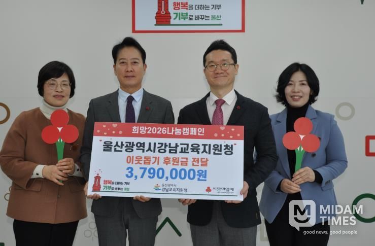 미담타임스 박민정 기자 | 울산 강남교육지원청은 연말연시를 맞아 29일 울산사회복지공동모금회에 이웃사랑 나눔 성금 379만 원을 전달했다.