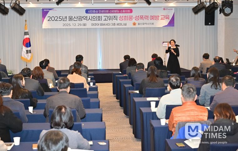 미담타임스 김준완 기자 | 울산광역시의회는 29일 오후, 의원과 의회사무처 직원 등 100여명이 참여한 가운데 한 해 동안의 노고를 격려하고 상호 간 소통과 협력을 다지기 위한 ‘울산광역시의회 세미나 및 송년 행사’를 개최했다.