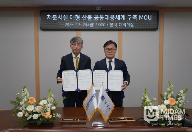 미담타임스 김준완 기자 | 경주시는 지난 29일 한국원자력환경공단과 산불 발생 시 신속하고 체계적인 대응을 위한 ‘산불 공동대응체계 구축 업무협약(MOU)’을 체결했다.