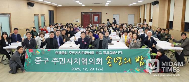 미담타임스 정주환 기자 | 인천 중구의회는 지난 29일 율목동 커뮤니티센터에서 열린 '2025년 중구 주민자치협의회 송년회'에 참석했다.