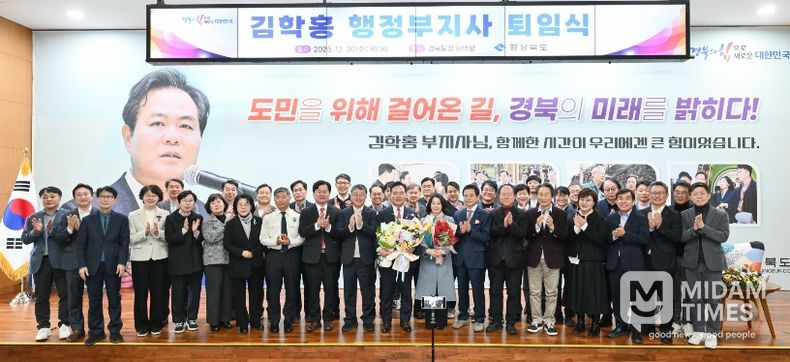 김학홍 행정부지사는 퇴임 인사를 통해 “경북의 부지사로 재임한 지난 3년 2개월은 도민 여러분과 함께 고락을 나눈 시간이었다”며 “이철우 도지사가 가장 강조해 온 도민의 생명과 안전을 최우선 가치로 삼고, 도정의 작은 변화 하나하나를 통해 도민 모두가 행복한 경북을 만드는 데 모든 역량을 쏟았다”고 밝혔다.