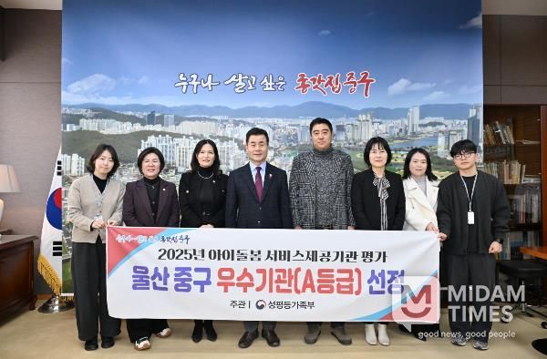 미담타임스 김준완 기자 | 울산 중구가 성평등가족부 주관 ‘2025년 아이돌봄 서비스 제공기관 평가’에서 A등급을 받아 우수기관으로 선정됐다.