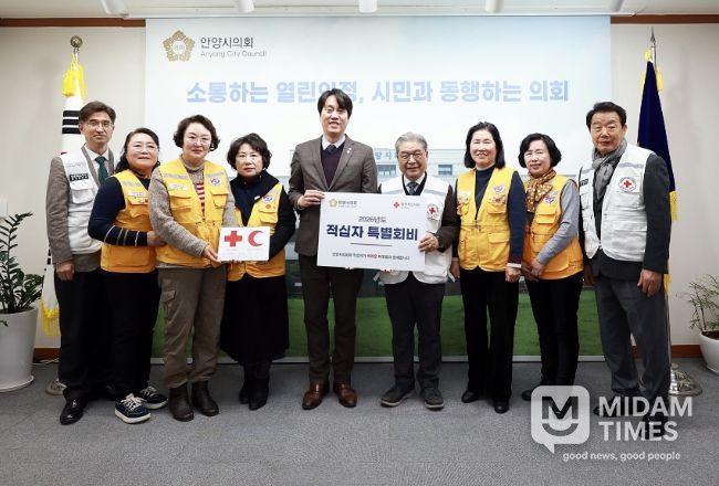 미담타임스 정주환 기자 | 안양시의회는 12월 30일 안양시의회 의장실에서 2026년 적십자 특별회비를 대한적십자사 경기도지사에 전달했다.