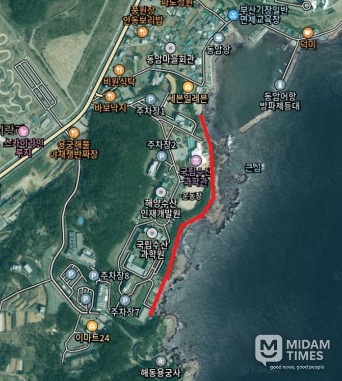 통제 구간은 해동용궁사부터 동암마을로 이어지는 해안로 일부로, 해동용궁사 내 방생터부터 국립수산과학원 옹벽으로 이어지는 약 600m 구간이다.