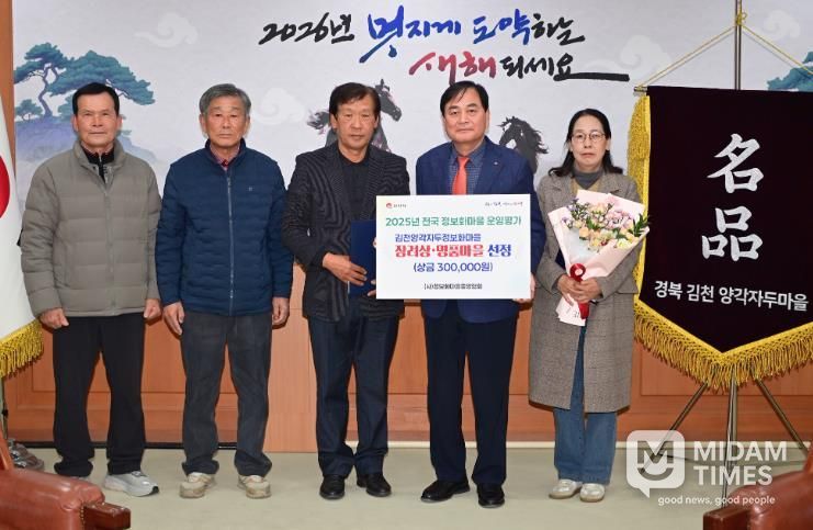 미담타임스 김준완 기자 | 김천시는 구성면에 위치한 양각자두마을이 2025년 전국 126개 정보화마을을 대상으로 한 운영평가에서 4위(장려상)를 차지하고, 3년 연속 10위 이내에 들어 ‘명품마을’로 선정됐다고 밝혔다.