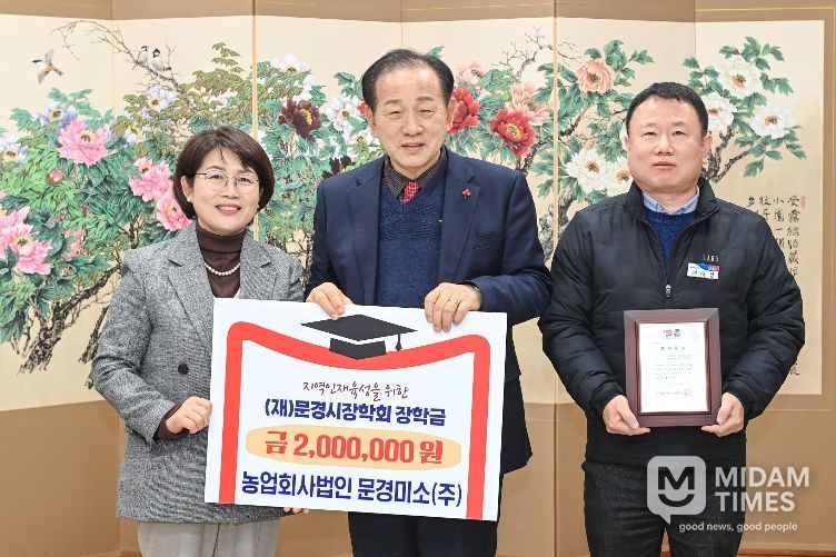미담타임스 김준완 기자 | (재)문경시장학회는 지난 30일 문경미소㈜가 지역인재 육성을 위해 200만 원의 장학금을 문경시장학회에 기탁했다고 밝혔다.