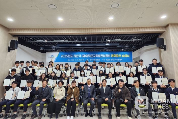 미담타임스 김준완 기자 | 재단법인 영덕군교육발전위원회는 지난 30일 영덕미래인재양성관에서 2025년도 하반기 장학증서 수여식을 개최했다.