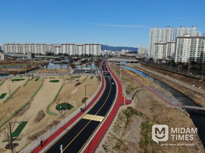 미담타임스 김준완 기자 | 경산시는 옥곡동 일원의 백옥교와 백농교 사이의 남천 우안에 위치한 도시계획도로인 중로3-24 개설 공사가 12월 31일 완료됐다고 밝혔다.