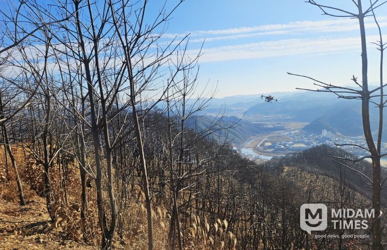 미담타임스 김준완 기자 | 청송군은 지난 30일, 산불피해가 극심했던 청송읍, 파천면, 진보면 군유림 일대에 대체작물 조성 시범사업을 위해 드론을 이용한 더덕, 도라지 종자파종을 시행했다.