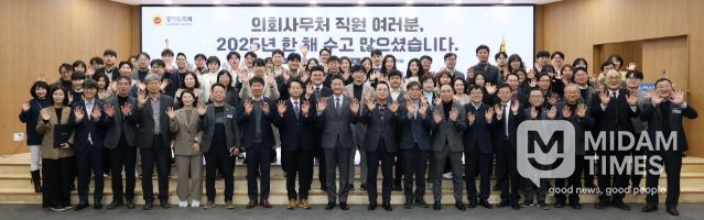 미담타임스 정주환 기자 | 경기도의회 김진경 의장(더민주·시흥3)은 31일 도의회 대회의실에서 2025년 한 해를 마무리하는 의회사무처 종무식을 열고, 사무처 직원들에 대한 격려와 감사의 마음을 전했다.