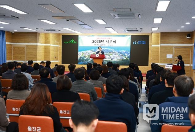 미담타임스 김준완 기자 | 손병복 울진군수가 2026년 병오년(丙午年) 새해를 맞아 울진군민 모든 가정에 건강과 행복이 가득하길 기원하며 울진군 미래 100년을 지속할 성장의 길로 함께 나아가는 내용의 2026년 신년사를 발표했다.