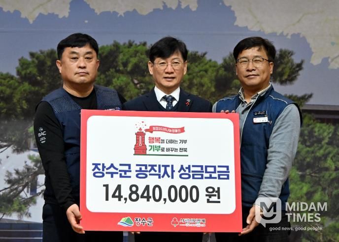 최훈식 장수군수는 “한마음 한뜻으로 성금 모금에 동참해 준 장수군 공직자 여러분께 감사드린다”며 “병오년 새해에도 도움이 필요한 이웃을 세심하게 살피고, 나눔과 배려가 군정 전반에 자연스럽게 이어질 수 있도록 최선을 다하겠다”고 말했다.