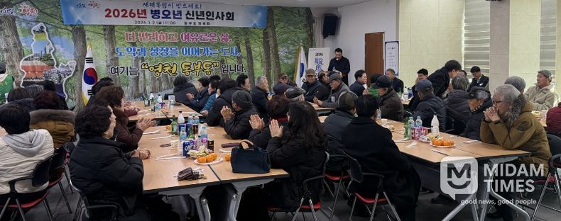 미담타임스 김준완 기자 | 영천시 동부동체육회는 2일 동 행정복지센터 2층 회의실에서 기관단체장과 지역 원로 등 60여 명이 참석한 가운데 ‘2026년 병오년 신년인사회’를 개최하고, 새해 덕담을 나누며 동민 화합을 다졌다.