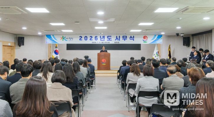 미담타임스 김교환 기자 | 합천군은 1월 2일, 군청 3층 대회의실에서 민간 표창 대상자와 공무원 등 100여 명이 참석한 가운데 2026년 시무식을 개최하여 새해 군정 운영 방향과 비전을 공유했다.