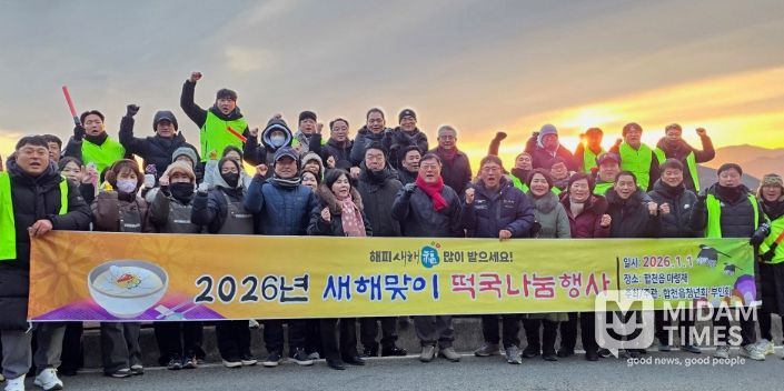 미담타임스 김교환 기자 | 합천읍청년회는 2026년 병오년 새해를 맞아 1월 1일 새벽 6시부터 합천읍 마령재 일원에서 ‘2026 해맞이 떡국 나눔 행사’를 개최했다.