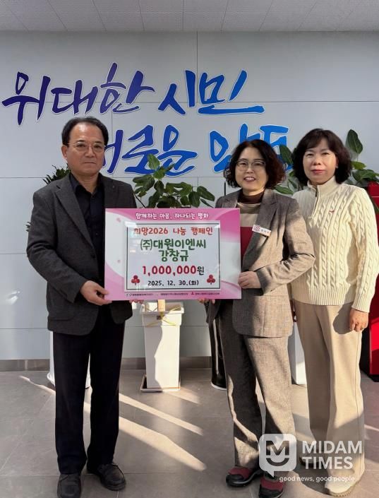 강창규 ㈜ 대원이엔씨 대표는 “희망2026 나눔 캠페인을 통해 도움이 필요한 이웃들에게 사랑과 희망을 전할 수 있어 뜻깊다”며 “작지만 꾸준한 나눔을 계속 이어나가고 싶다”고 밝혔다.