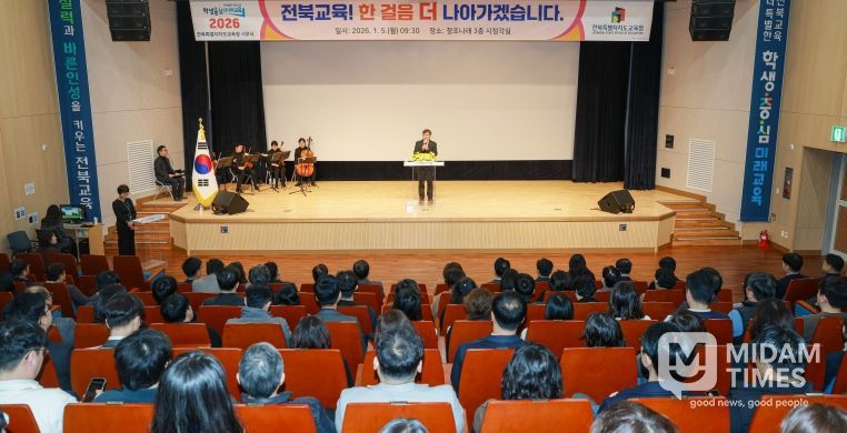 미담타임스 박민정 기자 | 전북특별자치도교육청은 5일 창조나래 시청각실에서 2026년 새해 업무 시작을 알리는 시무식을 개최했다.