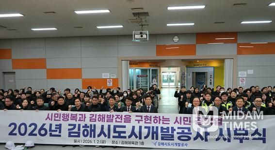 미담타임스 김교환 기자 | 김해시도시개발공사는 지난 2일 2026년 새해 시무식에서 전 직원이 청렴실천과 안전보건 결의를 다지며 힘차게 새해 첫 업무를 시작했다고 밝혔다.