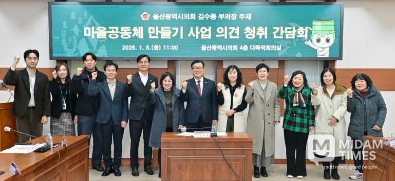 미담타임스 김준완 기자 | 울산광역시의회 김수종 부의장(방어·화정·대송동)은 6일 오전, 시의회 4층 다목적회의실에서 마을공동체 만들기 사업과 관련한 의견 청취 간담회를 개최했다.
