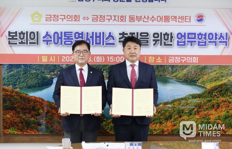 미담타임스 김교환 기자 | 금정구의회는 2026년 1월 6일, 금정구의회 의장실에서 동부산수어통역센터(센터장 여복기)와 '본회의 수어통역 서비스 제공을 위한 업무협약'을 체결했다.
