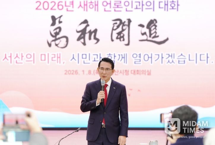 미담타임스 정인화 기자 | 이완섭 서산시장이 8일 시청 대회의실에서 새해 언론인과 대화를 통해 2026년 시정 운영 청사진을 밝혔다.