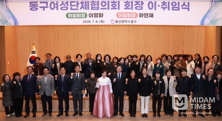 미담타임스 김준완 기자 | 동구여성단체협의회는 1월 8일 오후 2시 동구청 중강당에서 제26대 회장 이취임식을 개최하고, 신임 회장으로 이영화 회장이 공식 취임했다.