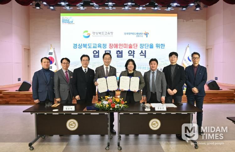 미담타임스 김준완 기자 | 경북교육청은 8일 본청 웅비관에서 한국장애인고용공단 경북지사와 ‘(가칭)경상북도교육청 장애인미술단’ 창단을 위한 업무협약을 체결했다고 밝혔다.