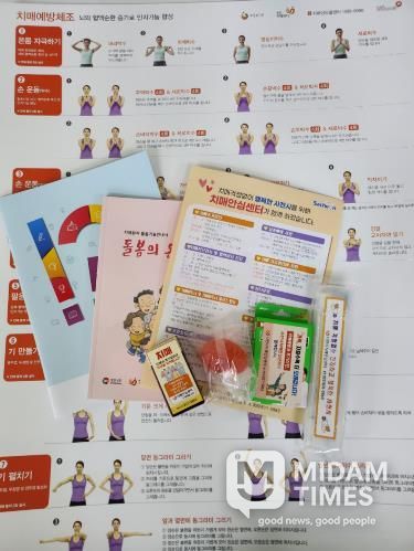 '마음 든든! 치매안심 꾸러미'는 ▲에코백 ▲인지 능력 향상 워크북 ▲악력볼 ▲건강관리 영양제 ▲칫솔세트 ▲위생밴드 ▲치매가족 돌봄기술 안내책자 ▲치매예방 운동 포스터 등 치매예방과 일상 건강관리에 도움이 되는 물품들로 구성돼 있다.