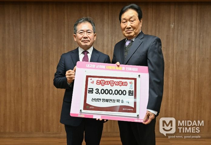 박 명예면장은 이날 위촉식 자리에서 고향 사랑의 마음을 담은 기부금 300만원을 전달해 현장을 더욱 훈훈하게 만들었다. 이는 명예면장이라는 직함을 넘어, 고향을 향한 변함없는 애정을 실천으로 직접 증명한 것이기에 주민들에게 더욱 깊은 울림을 주었다