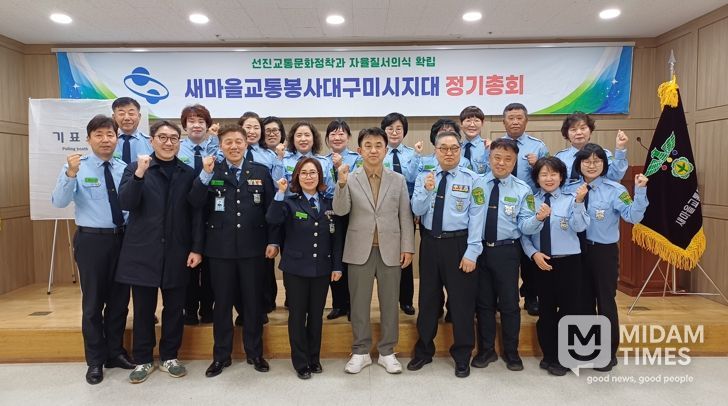 미담타임스 김준완 기자 | 구미시는 지난 8일 구미시새마을회 강당에서 새마을교통봉사대구미시지대 주관으로 대원 20여명이 참석한 가운데 ‘2026년 새마을교통봉사대구미시지대 정기총회’를 개최했다.