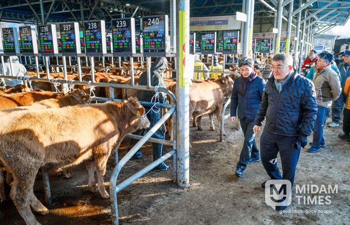 미담타임스 김준완 기자 | 예천군은 9일 경매가 진행 중인 예천가축경매시장에서 한우 가격 동향과 경매시장 운영 실태 등을 현장점검했다.