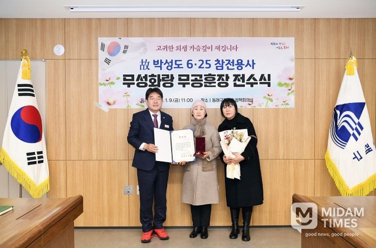 미담타임스 김교환 기자 | 부산 동래구는 지난 9일 6․25전쟁에 참전해 무공을 세운 고(故) 박성도님의 자녀인 박순자 씨(수민동 거주)에게 무성화랑 무공훈장과 훈장증을 전수했다고 밝혔다.