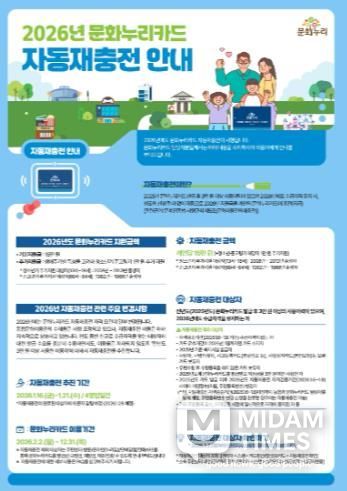 미담타임스 김준완 기자 | 고령군은 문화누리카드 이용자의 편의를 높이기 위해 오는 1월 16일부터 21일까지 2026년 문화누리카드 자동 재충전을 시행한다.