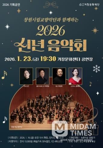 미담타임스 김교환 기자 | (재)거창문화재단은 오는 23일 19시 30분에 거창문화센터 공연장에서 창원시립교향악단과 함께하는 새해맞이 ‘2026 신년음악회’를 개최한다.